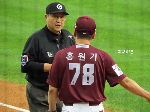 항의 중인 홍원기 감독..이후 퇴장