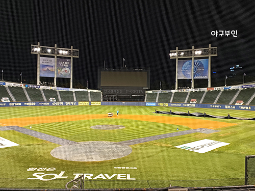 요즘 밤마다 비가 많이 내리는지라 야구장 방수포 보강작업을 꼼꼼히 하더라구요