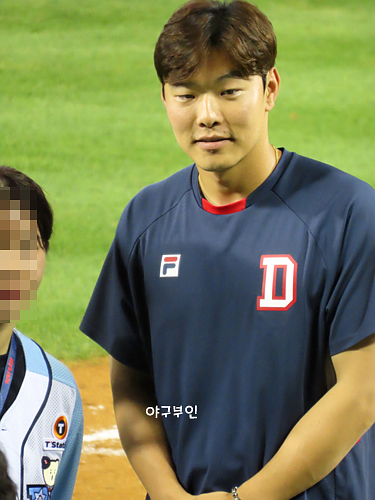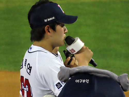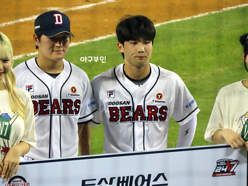 경기가 끝난 후 포토타임을 갖는 최원준 투수