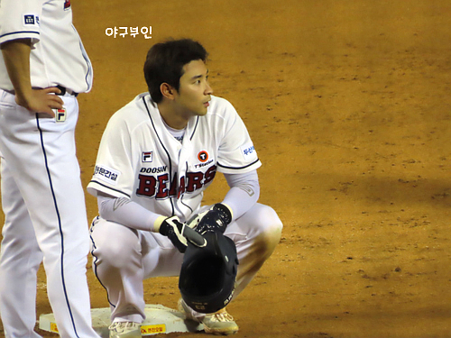 한 명 들어오고 허경민 선수는 비디오 판독 중..결과는 원심 그대로 아웃~!!
