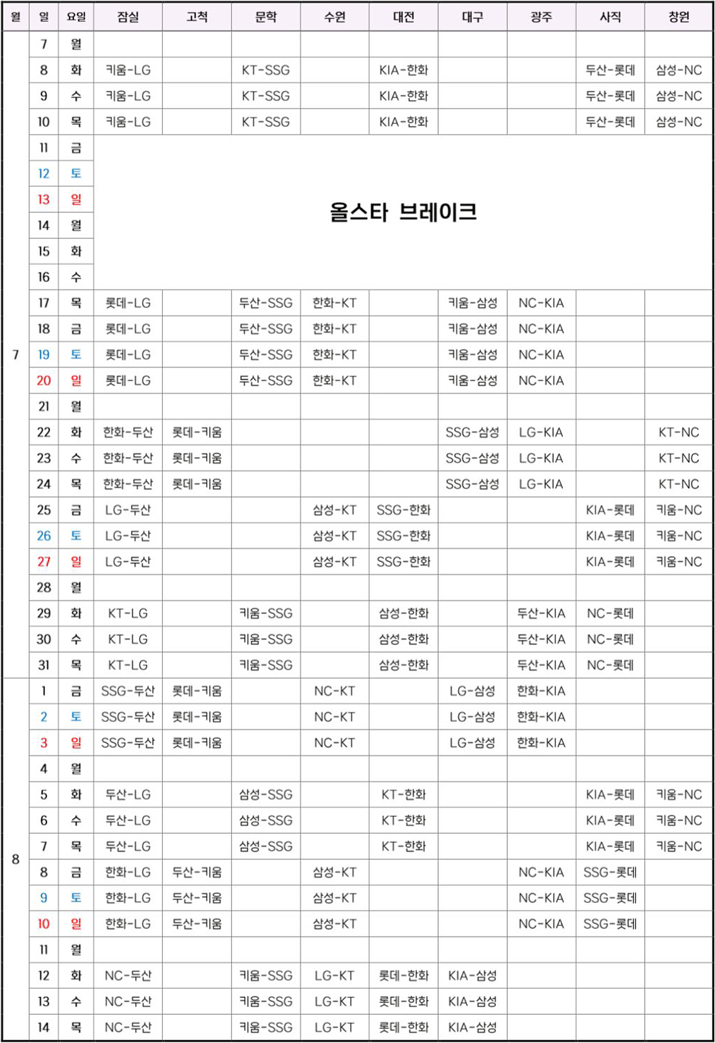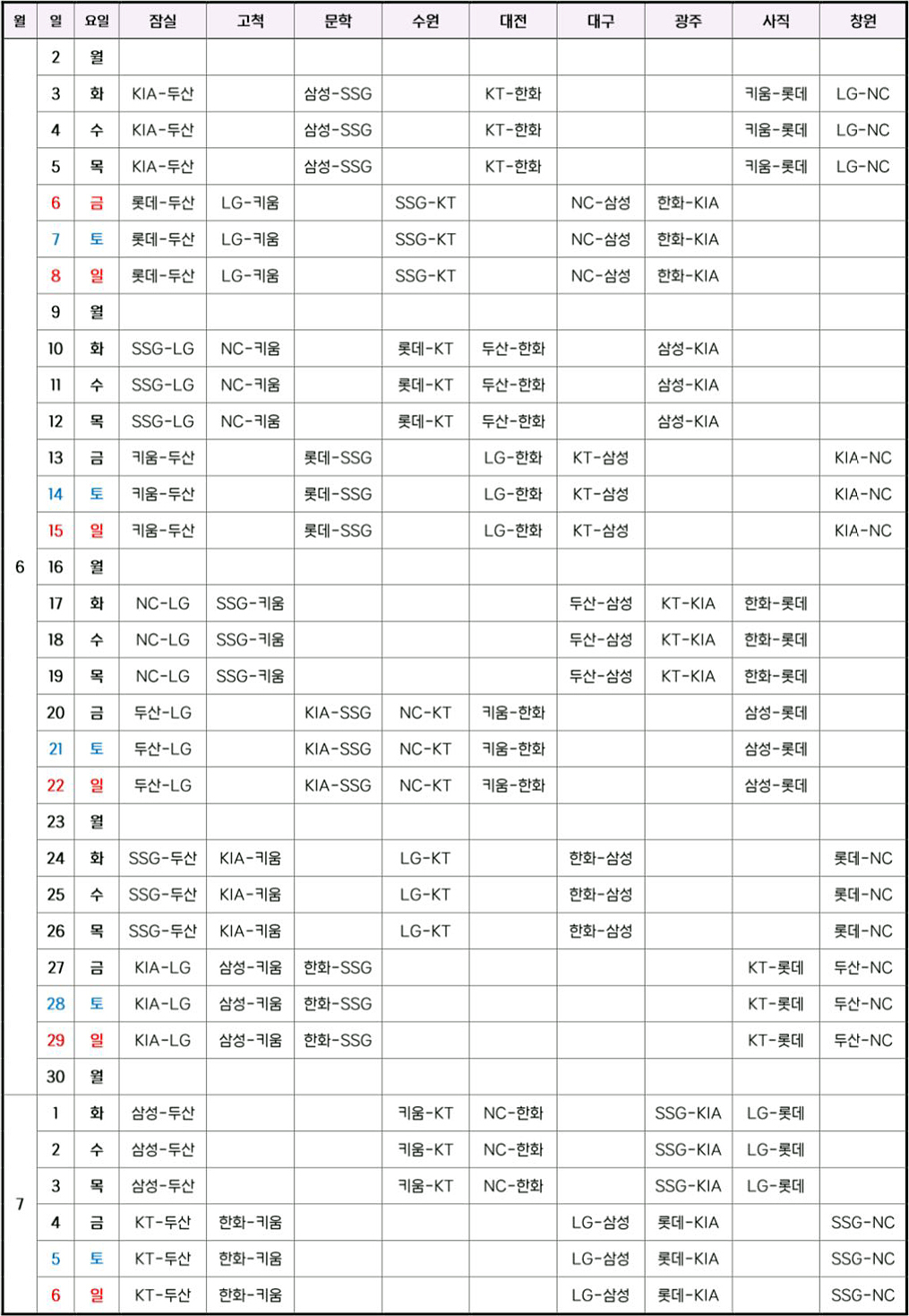 2025 KBO 정규시즌 경기 일정이 발표됐습니다..^^