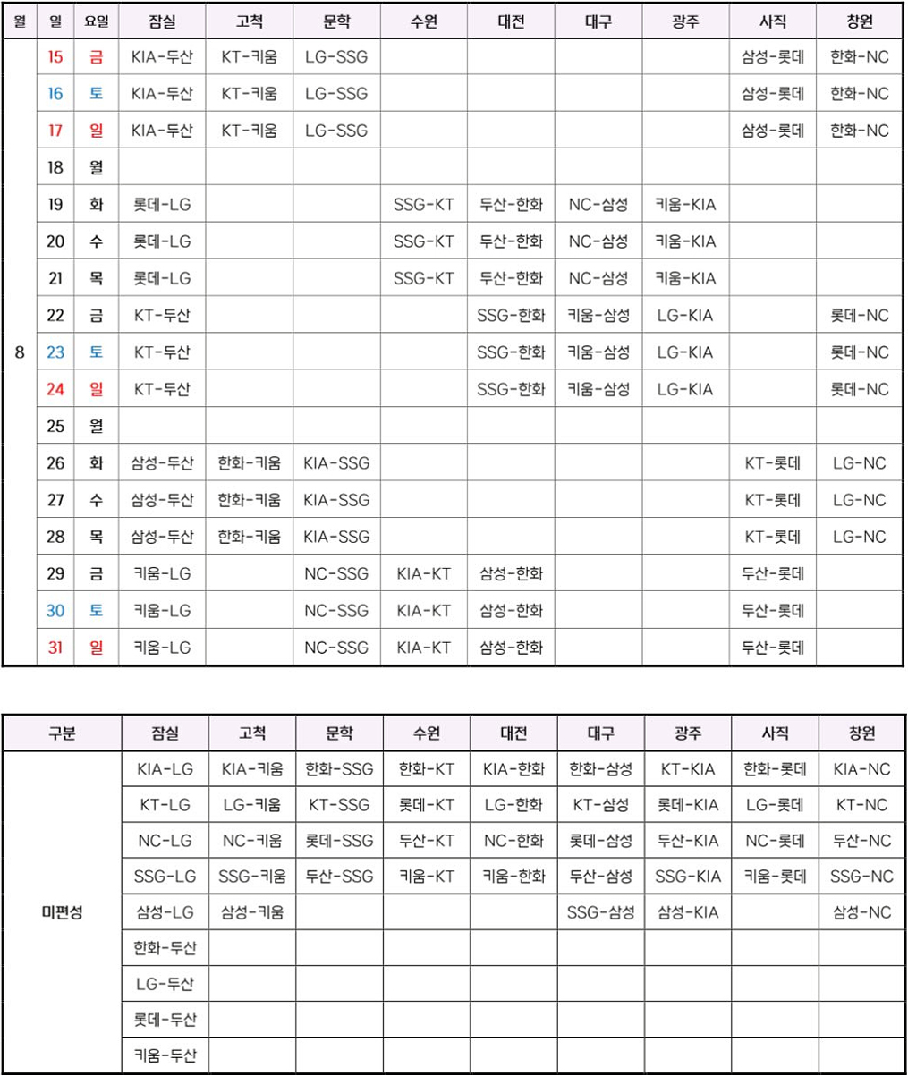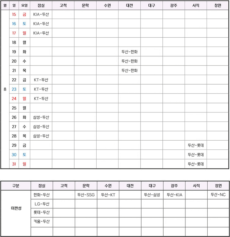 아래, 두산베어스 경기 일정만 따로 올려놓을게요..^^