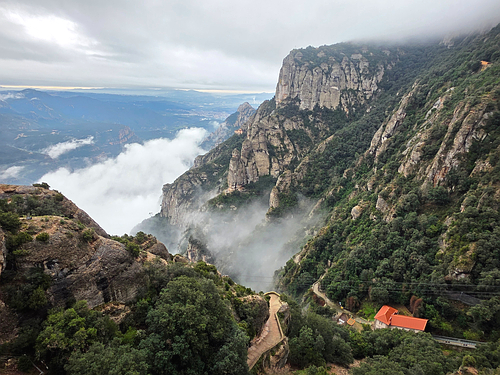 이루어진 바위산 아래에 자리 잡고 있어요..몬세라트(Montserrat)는 톱니 모양의 산이라는
