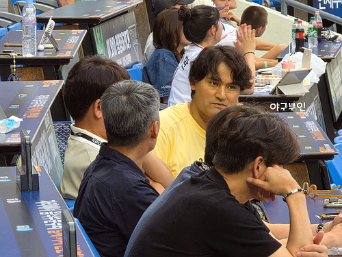 옆자리 회원님 일찌감치 야구장에 오셨네요