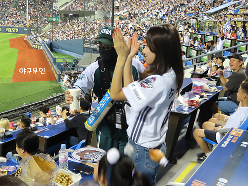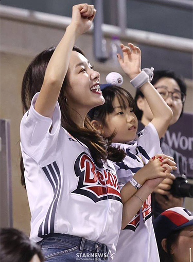 오른쪽 뒷쪽의 소이현 배우 첫째 딸..이 친구는 아빠와 함께 이글스 팬