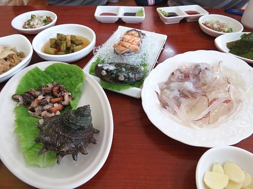 도미회가 나오기 전에 한치와 소라, 전복이 나왔습니다..요즘 한치가 제 철..^^
