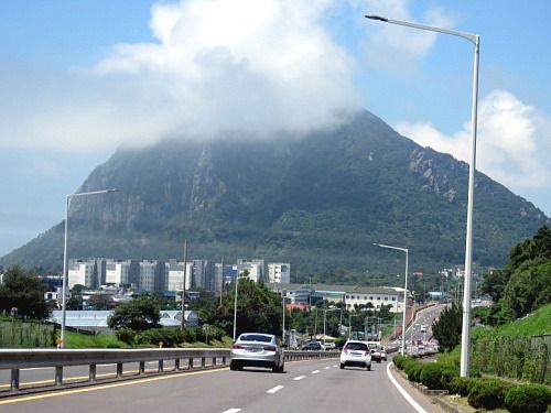 셋째날 아침..산방산을 지나는 중인데 정말 멋지지 않나요..??
