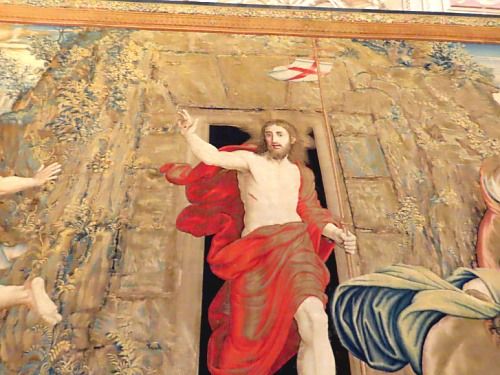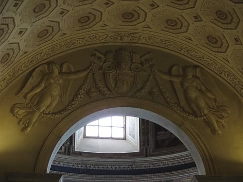 가운데는 교황의 문장..오른쪽은 라파엘로, 왼쪽은 미켈란젤로인 것으로