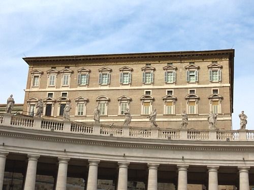 저기 윗쪽 오른쪽 두 번째..교황님의 집무실..문을 열고 손을 흔드시는 곳이라네요