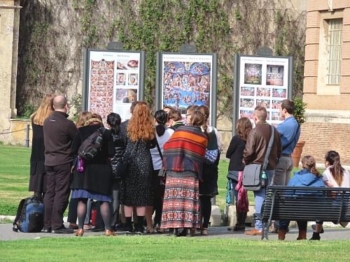 박물관에 들어가기 전에 이렇게 밖에서 미켈란젤로의 천지창조에 대한 설명을 듣습니다