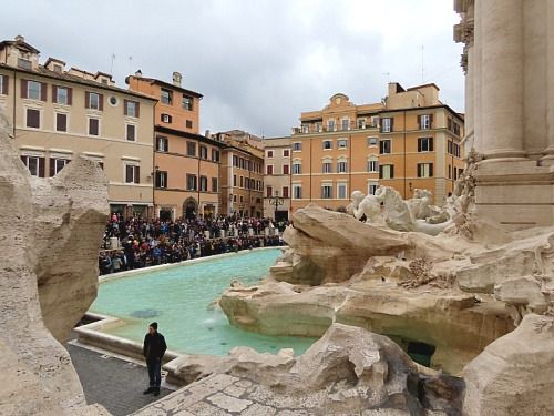 트레비 분수에서 동전을 던지는 사람들이 많은데 오른손에 동전을