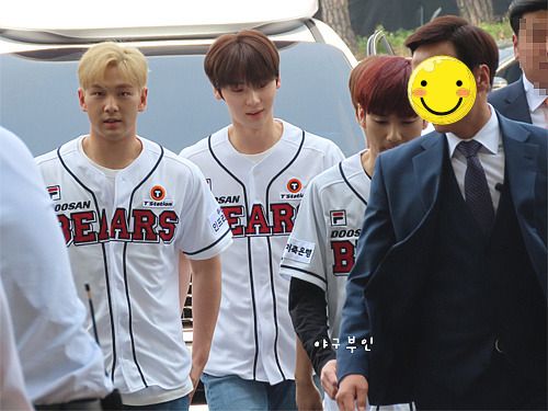 오늘 경기에서 시구와 시타를 하게 된 아이돌그룹 뉴이스트(NUEST)가 도착했네요