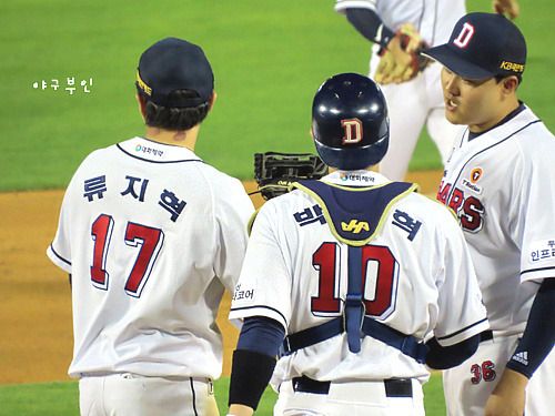 8회 초를 잘 마무리하고 내려가는 유희관 투수..과연 9회에도..??