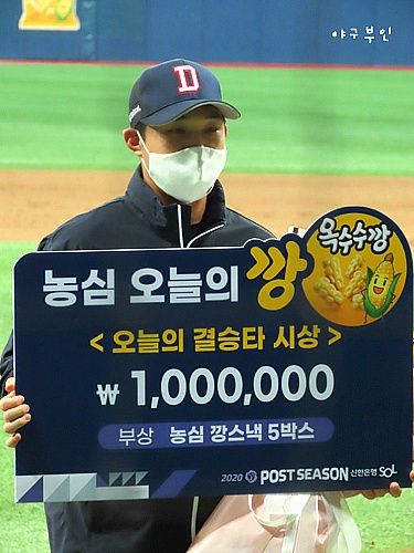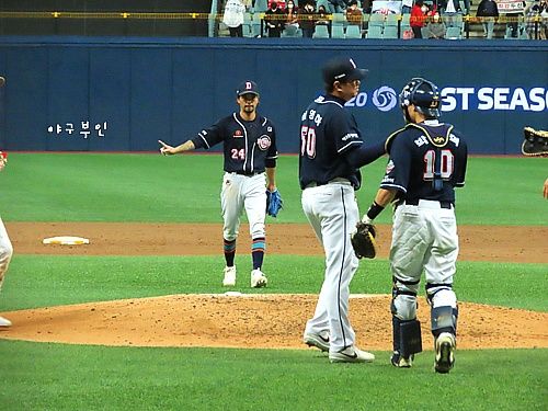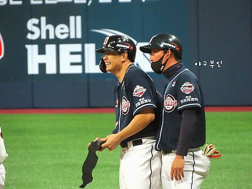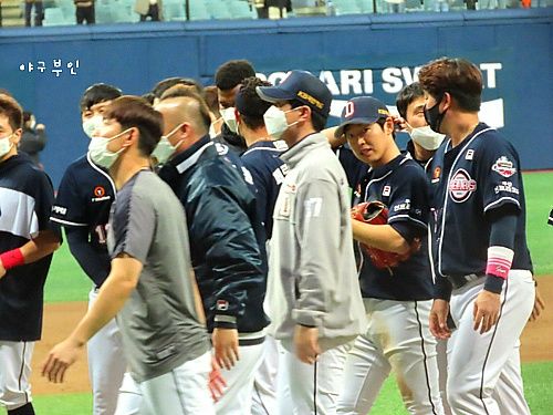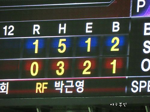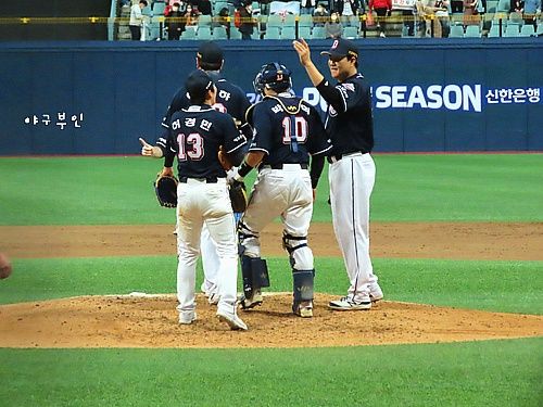그 적시타가 곧 결승타가 되어..관록의 베어스가 플레이오프 1차전을 잡는데 성공했습니다..ㅋ