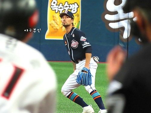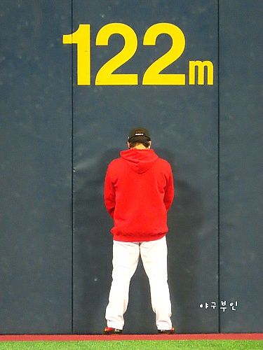 누구일까요..외야 맨 가운데 서서 간절하게 기도하는 이