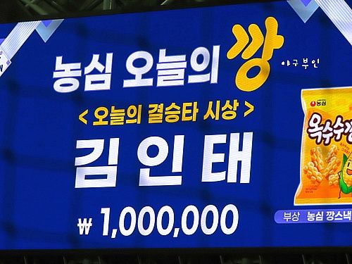 9회 초, 대타 김인태 선수의 2구 우익수 앞 적시타..소위 깨끗하다고 표현하는 그런 적시타..^^