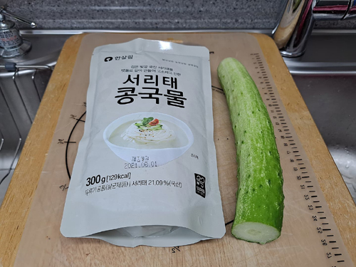 준비물은 아주 간단해요..오이와 콩국물..^^