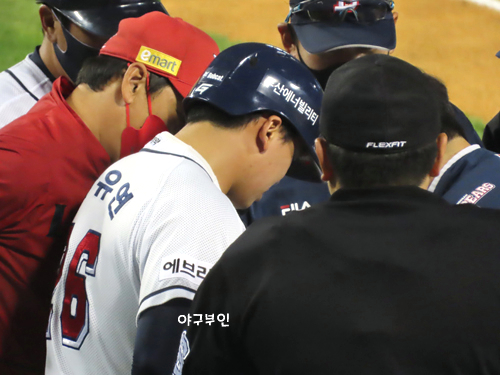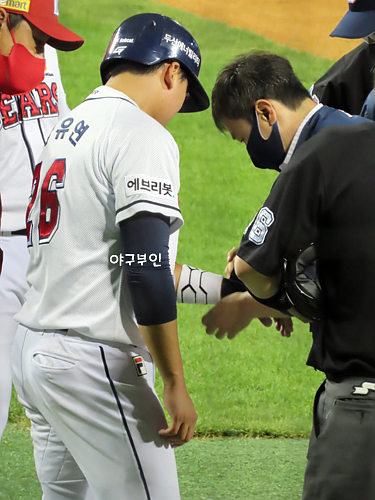 6회 말, 손목에 공을 맞은 박유연 선수..ㅠㅠ