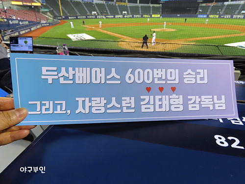 김태형 감독의 600승을 기념하여 팬들이 마련한 커피트럭이래요