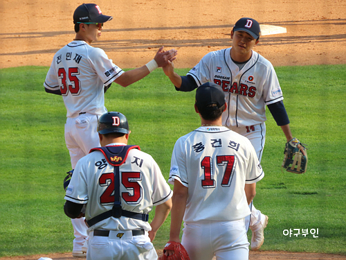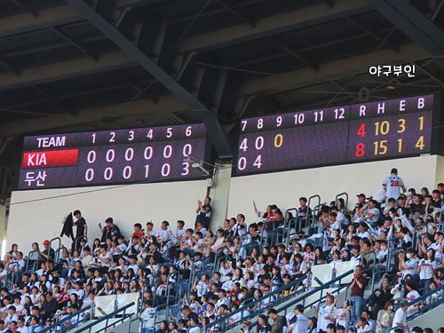 6회 말에 석 점의 추가점을 내면서..여유있게 앞서가기 시작한 베어스