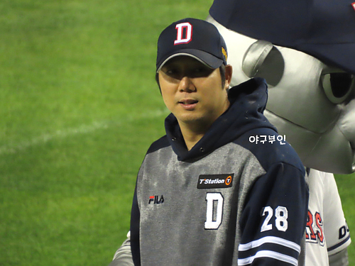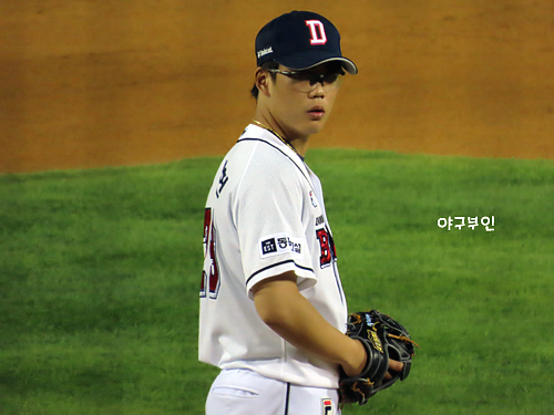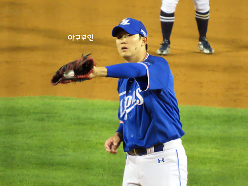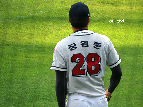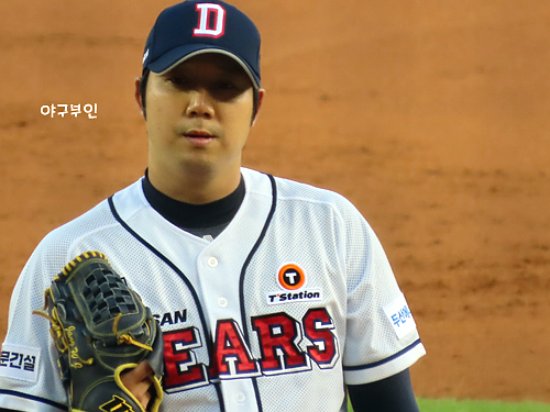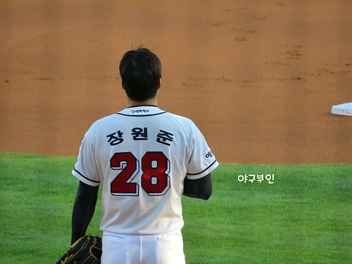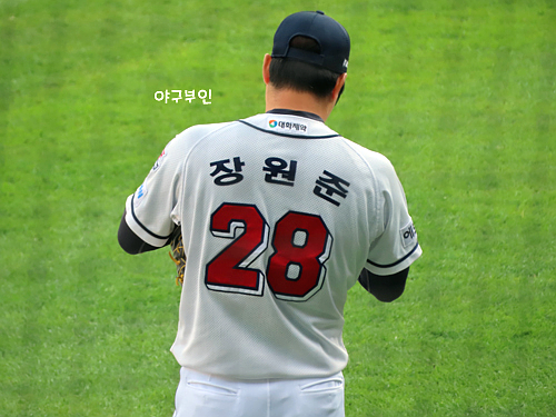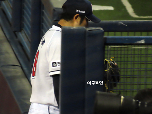 장원준 투수의 루틴..바로 덕아웃이 아닌 그라운드 옆으로 나와서 몸을 푸는 거