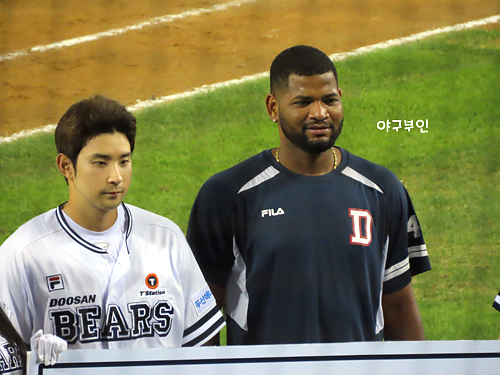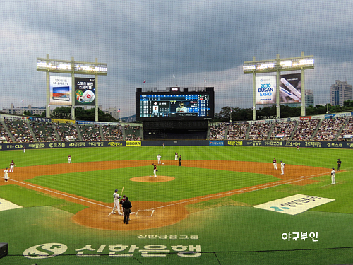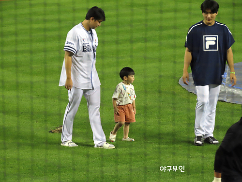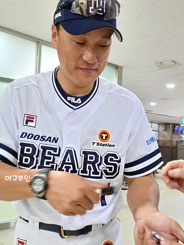 야구장에 갔더니 마침 이승엽 감독이 로비에 나왔더군요