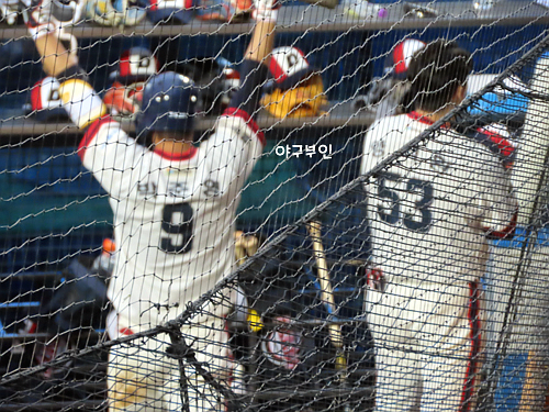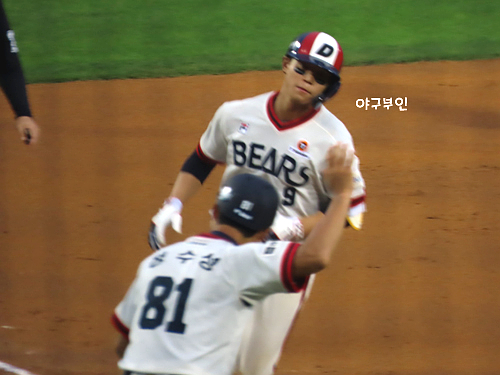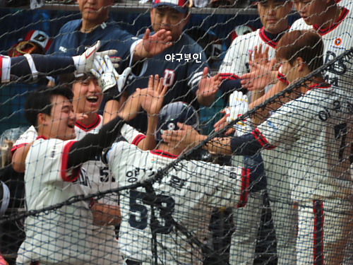 양석환 선수가 드디어 안아주네요..ㅎㅎㅎ