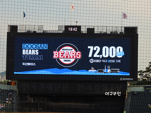 오늘 나온 또 다른 기록..두산베어스의 KBO 역대 세 번째 72,000루타 달성도 축하합니다