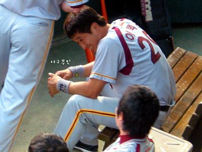 임재철 선수에게 무엇인가 한참 이야기를 듣고있더군요