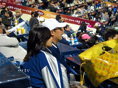 베어스 골수팬인 개그맨 이병진 씨 부부가 관람을 하러 왔네요