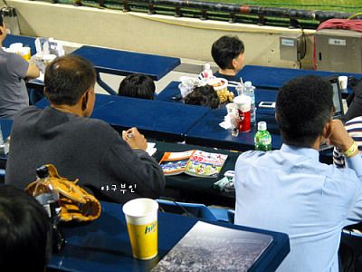 열심히 관전을 하든지..특히 김현수 선수 응원가를 율동과