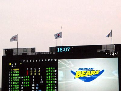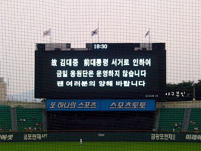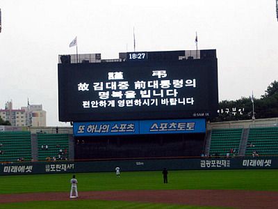경기 시작 전, 故 김대중 대통령의 명복을 빌면서 묵념