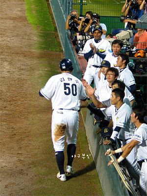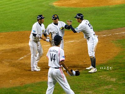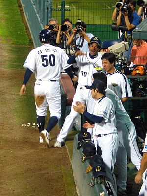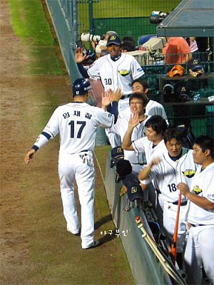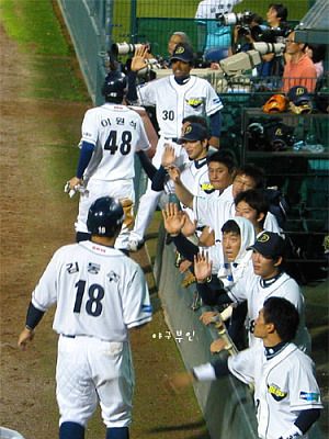 선수들이 홈을 밟고 들어올 때마다 어찌나 열심히