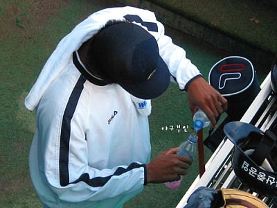 경기 전, 비타민 음료를 섭취하는 세데뇨