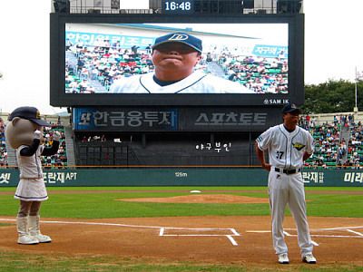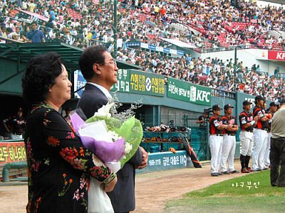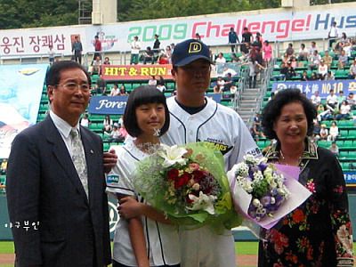 오늘 경기 전에 울 베어스의 장샘..장원진 선수가 은퇴식을 가졌습니다.