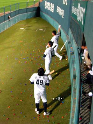 김동주 선수, 두 개의 타점을 기록한 최준석 선수 등 다 잘 해줬습니다.
