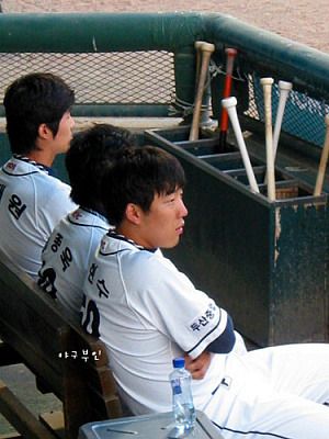 마침 울 선수들 물 마시는 것을 찍어놓은 사진도 있고 야구장 중앙석에서