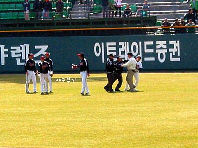 오늘 야구장에서는 경기 외적으로 관중의 그라운드 난동을 비롯해