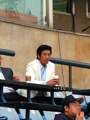 탤런트 윤태영 씨도 야구관람을 하러 왔네요