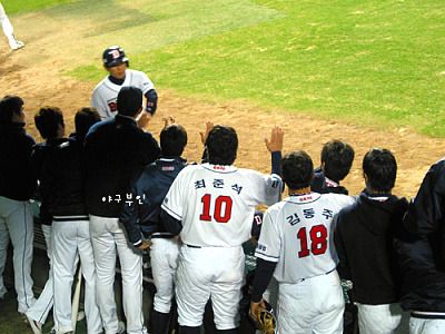울 선수들이 점수를 내자 너무 좋아하던 이현승 투수