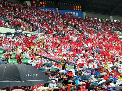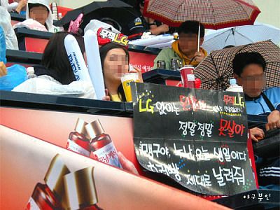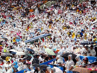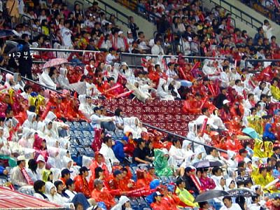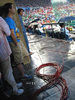 세차게 내리는 빗속에서도 꼼짝하지 않고 경기를 지켜보던 많은 팬들