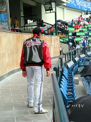 시간내어 야구장에 잠시 들르셨어요..저랑 둘이 덕아웃을 보고있는 중..^^