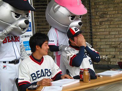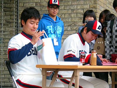 사인회를 마치고 포토타임을 가졌는데 임태훈 투수,