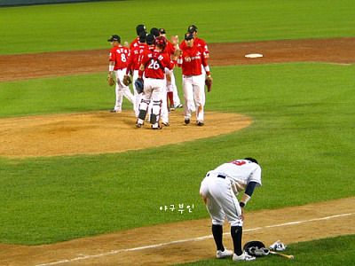 9회 말, 절호의 찬스에 삼진아웃을 당한 이종욱 선수