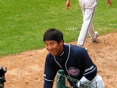 카메라맨과 즐겁게 얘기를 나누는 김현수 선수