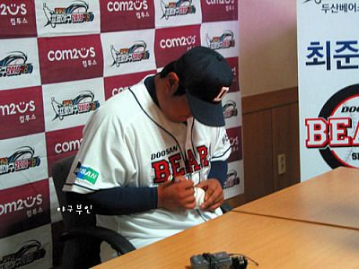 모바일 게임업체인 컴투스 주최로 경기 전에 열린 최준석 선수 사인회