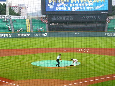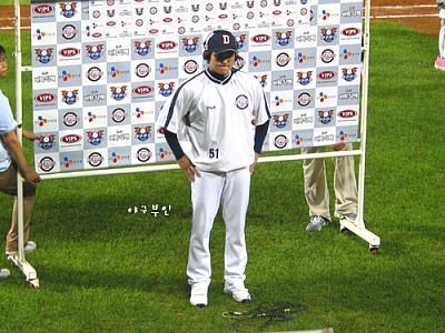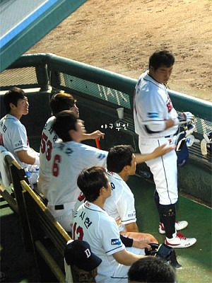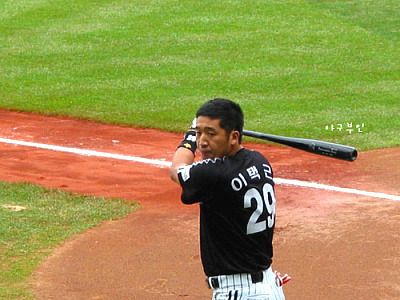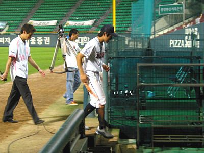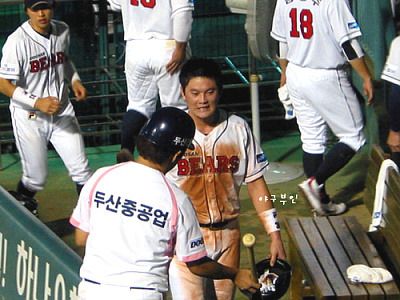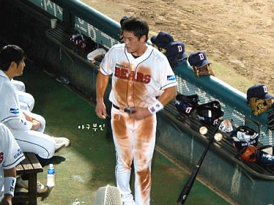 이범준 투수의 공에 몸을 맞은 김동주 선수..잠시 욱하셨죠..^^;;