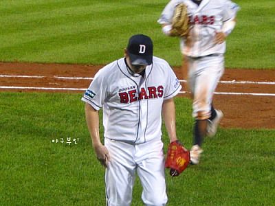 3회 초에 임태훈 투수의 어이없는 실책으로 한 점을 먼저 내준 베어스