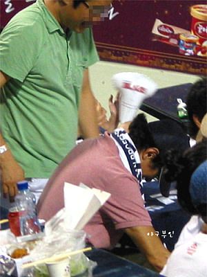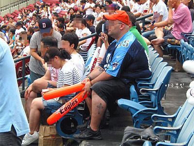 베어스에서 이글스를 응원하는 용감한 외국인 팬..^^