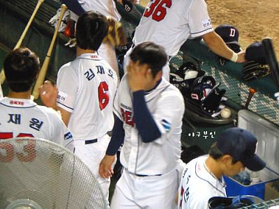 좋은 기회에서 두 개의 병살타를 쳐낸 양의지 선수..음~ 날씨가 더운